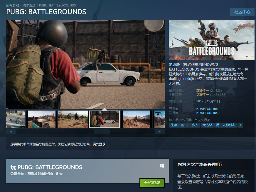 【免费试玩绝地求生电脑版】免费玩吃鸡了!打开地址->开始游戏->假期没游戏玩可以玩玩->感觉不错的话就等下次五折再入手->活动截止到8月17日!