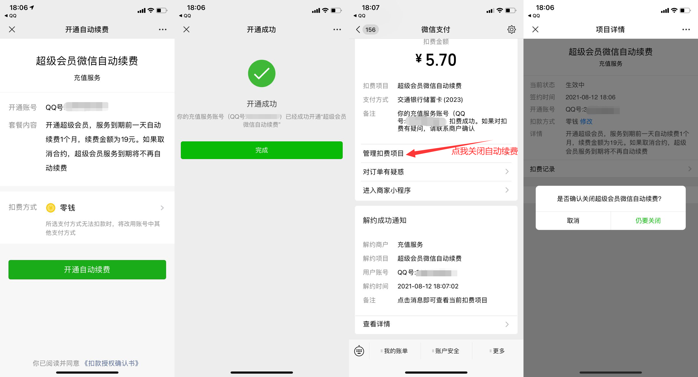 【5.7元撸QQ超级会员月卡】打开地址->根据操作即可->开通完记得关闭自动续费如图所示!需要的上!