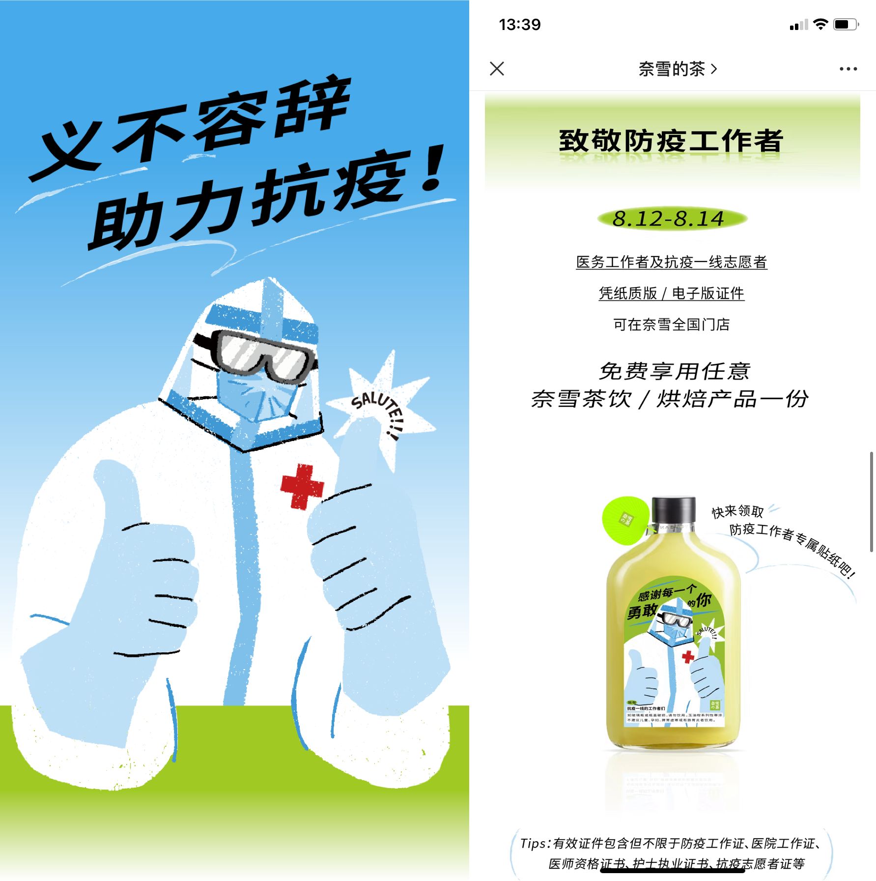 【医护抗疫人员免费喝奈雪茶饮】致敬医护和抗疫工作者,不符合的可以转发给朋友!8.12-8.14活动三天,医务工作者及抗疫一线志愿者持纸质版或电子版工作证件,到全国任意一家门店可免费领取任意茶饮或烘焙产品一份!