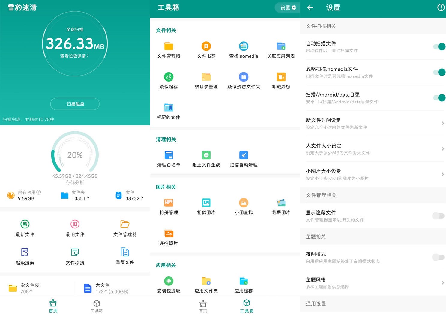 雪豹速清是一个免费且强大的安卓清理软件,雪豹速清功能十分的强大,为用户提供手机内存扫描清理、文件夹清理、视频图片清理以及应用专清等功能,帮助手机清理垃圾,加快手机的运行速度,并且雪豹清理支持安卓11/Android/data目录访问、扫描、复制、删除等操作。还可以帮助快速清理手机内存,让手机运行如电。