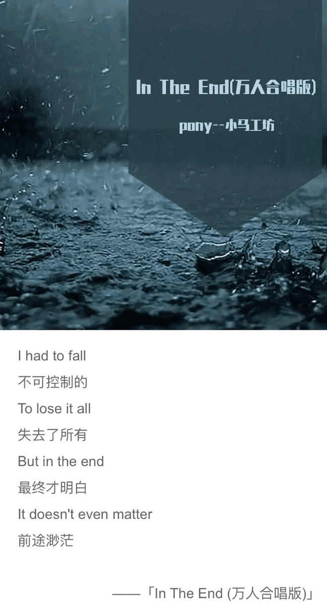 『单曲推荐』In The End (万人合唱版)/小马工坊