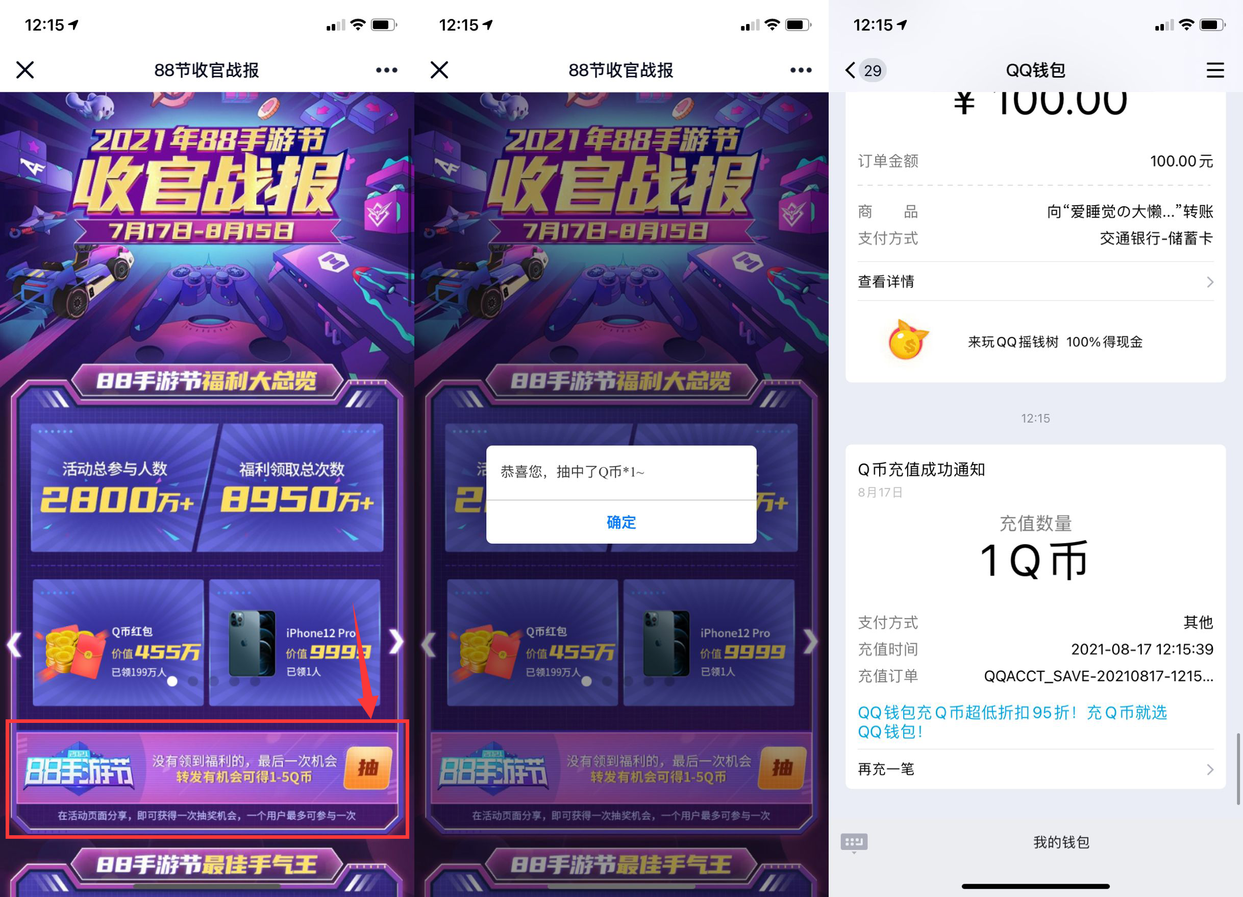 【QQ88节收官抽1~5Q币】手Q打开->下拉找到如图所示的位置->右上角随便转发给好友->返回抽即可!亲测中1Q币。