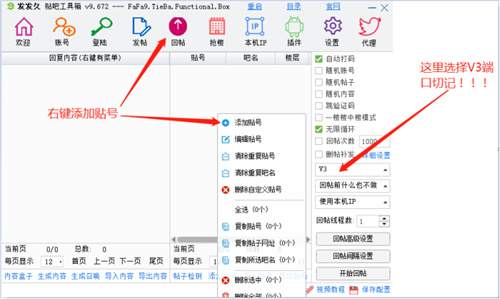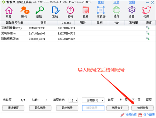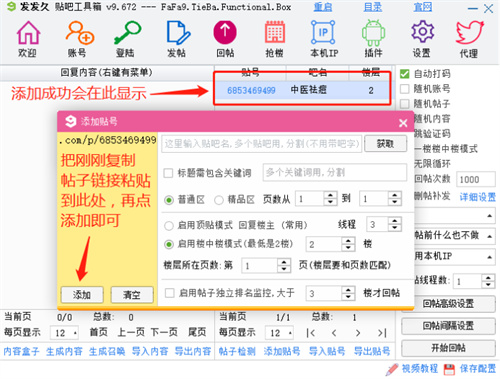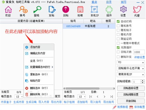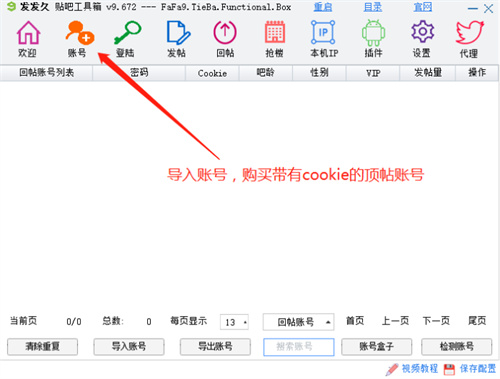 那么账号导入完成后,下面演示下如何将自己发的帖导入到软件中。然后设置顶贴内容,实现顶贴操作。
