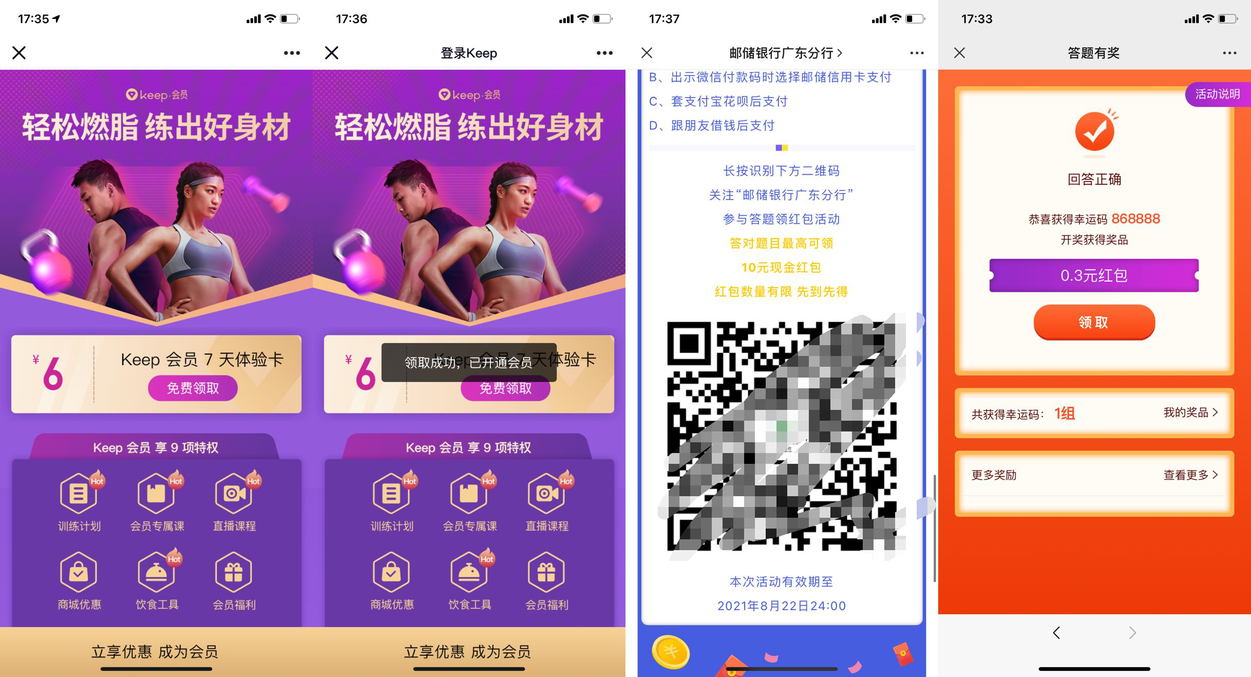 【免费领Keep运动健身会员6天】打开地址登录手机号后直接领取->如果提示领取失败就是领完了!