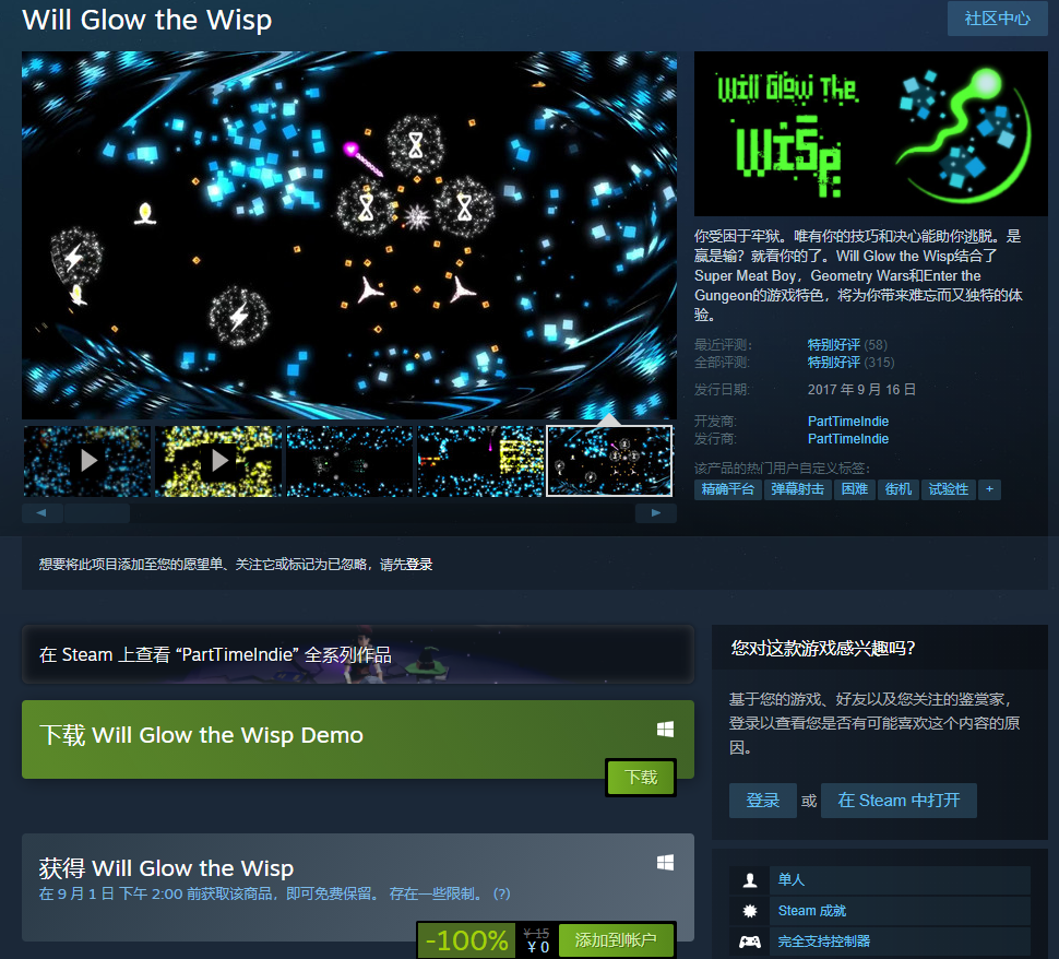 Steam喜加一免费领《Will Glow the Wisp》一款休闲小游戏。好玩,就是有点考验操作。