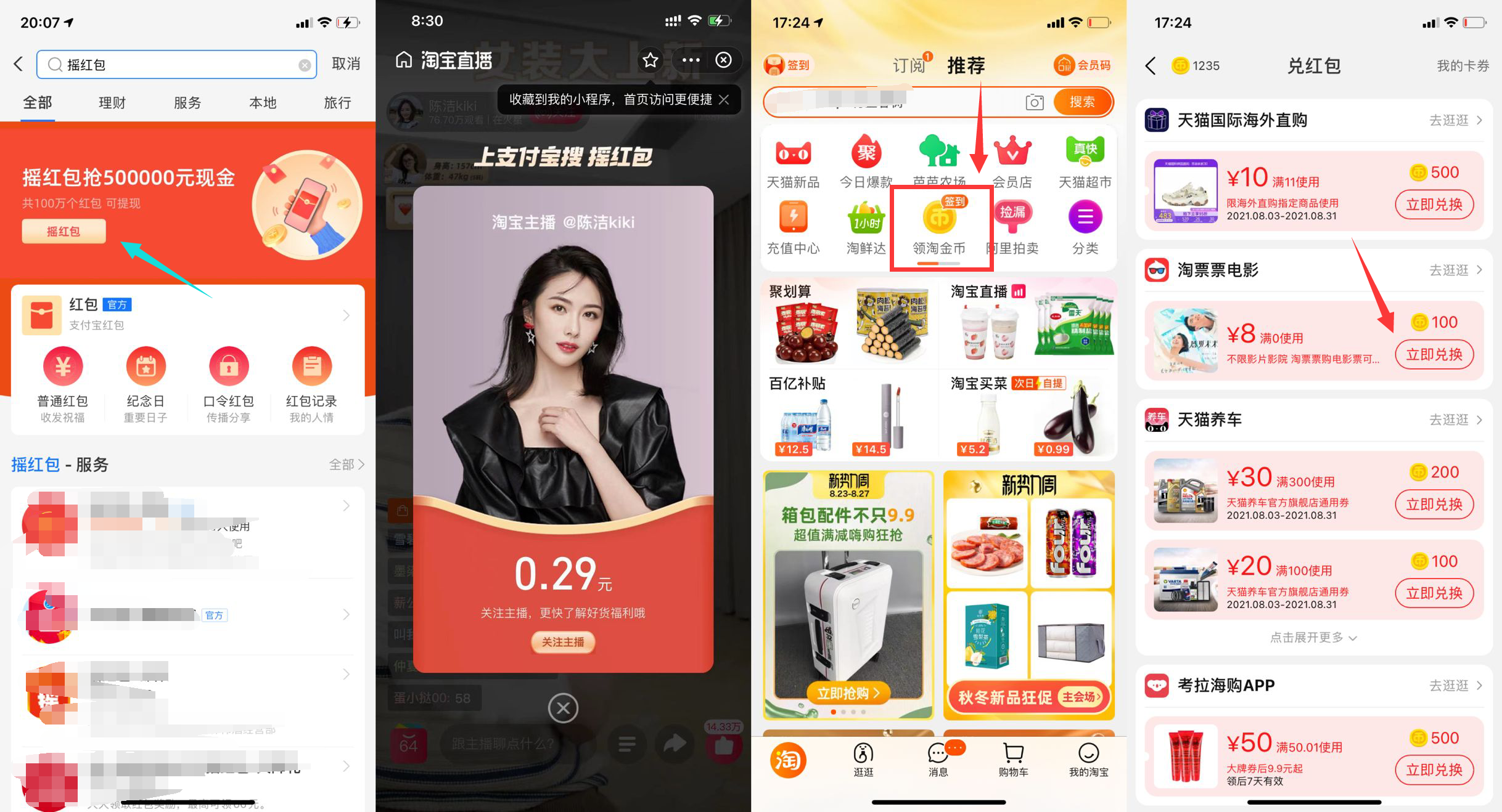 【淘宝兑换淘票票8元券】打开桃宝APP->首页点领淘金币进去->点兑红包->下滑找到如图所示的!用100淘金币兑换,不限影片满2张可用->周末打算去看电影的领一手!