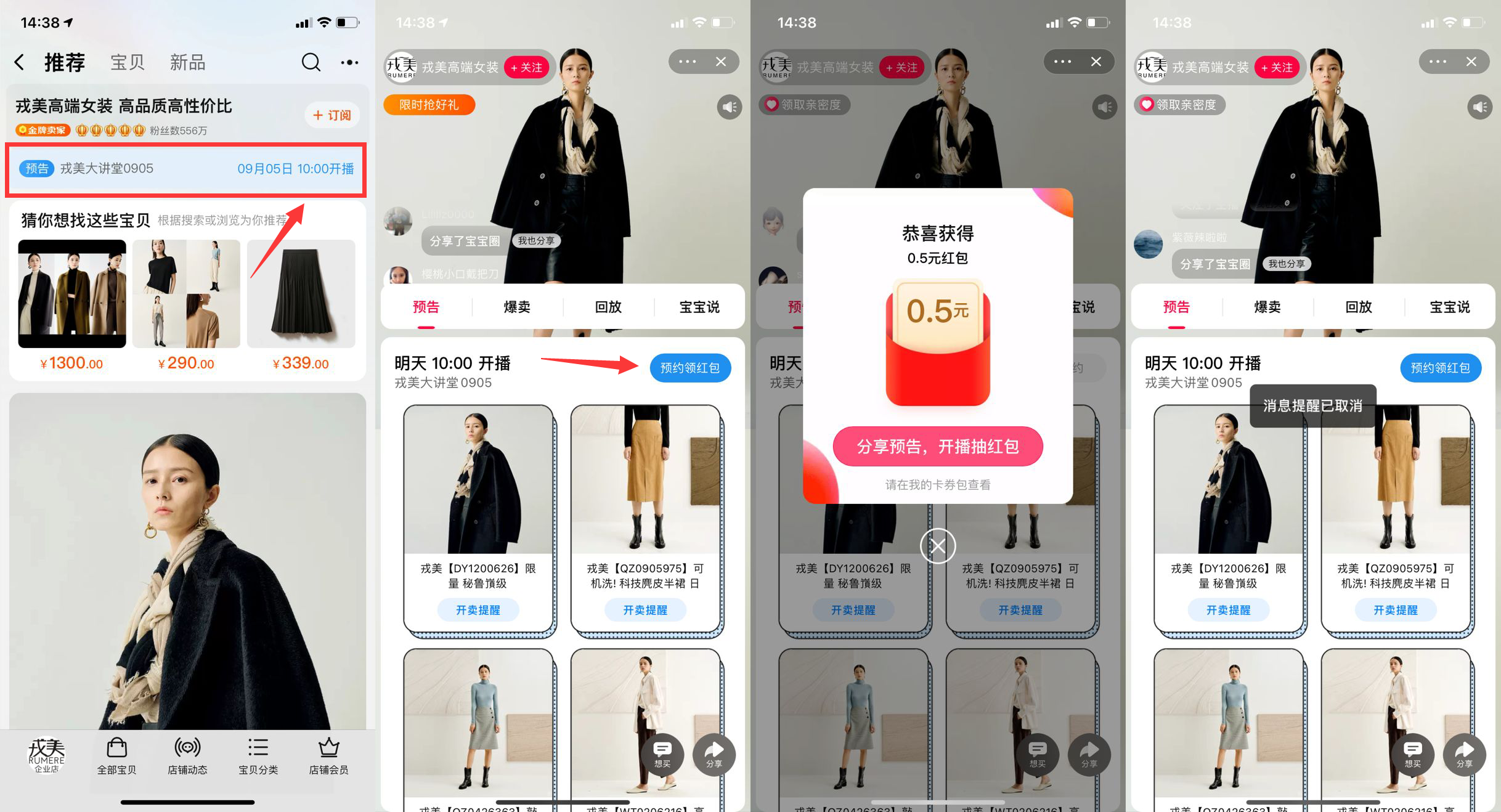 【淘宝必领0.5元购物红包】新一期!淘宝搜索“戎美高端女装”->进店->点顶部蓝色字体->预告->预约领红包->如果没反应没弹窗就多试一下!