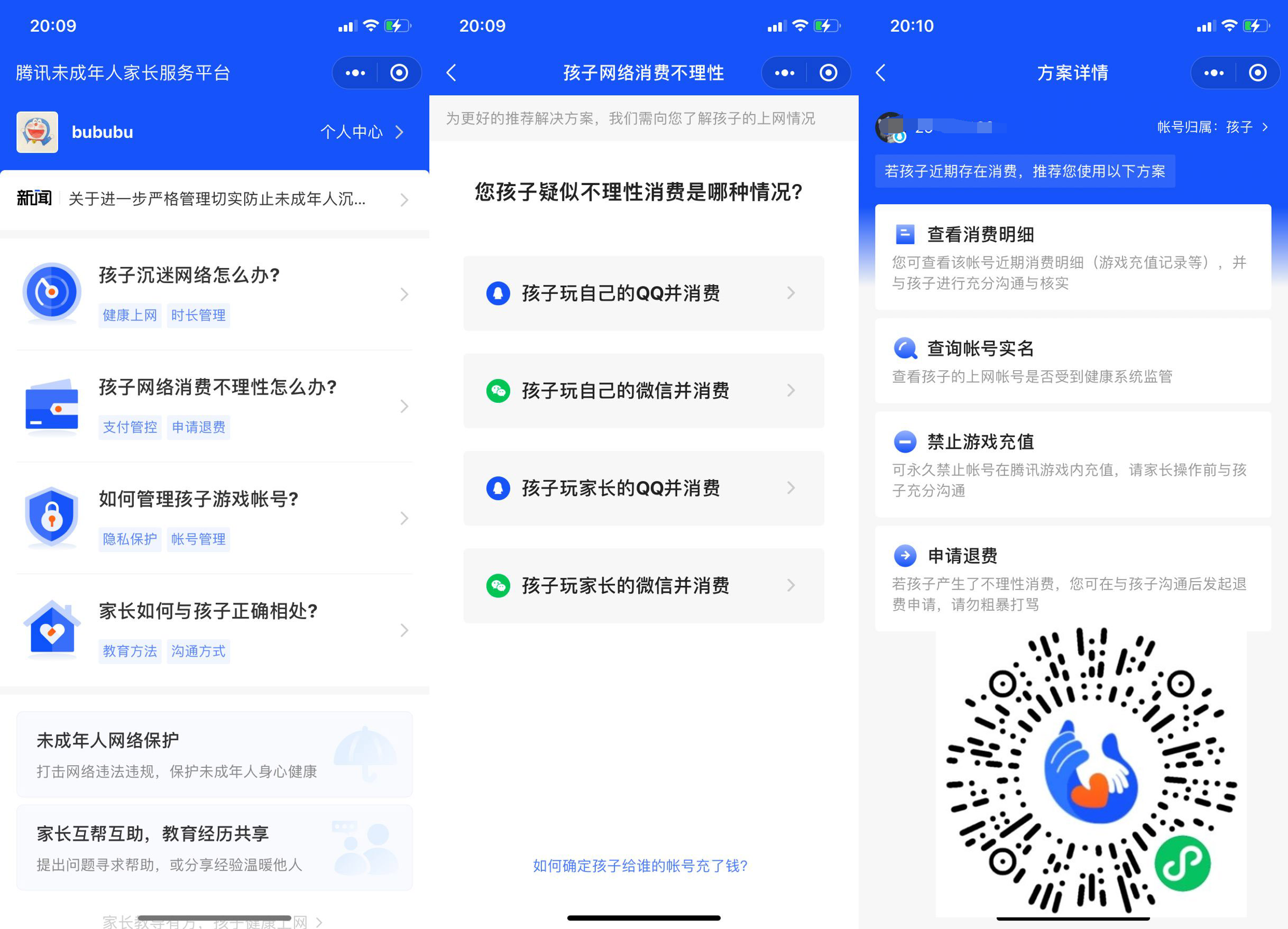 【腾讯未成年人消费可退款】微信扫码进入->点击“不理性怎么办”->申请退费->需要监护人发起->按照提示操作即可!除了退费还有其它功能,比如查询明细,账号管理等等!
