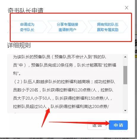 7、只要完成10条回答,就可以申请成为奇书队长,获取专属推广链接,这时候,就不用苦逼的回答问题了,直接引兼职粉,拉新躺赚即可;