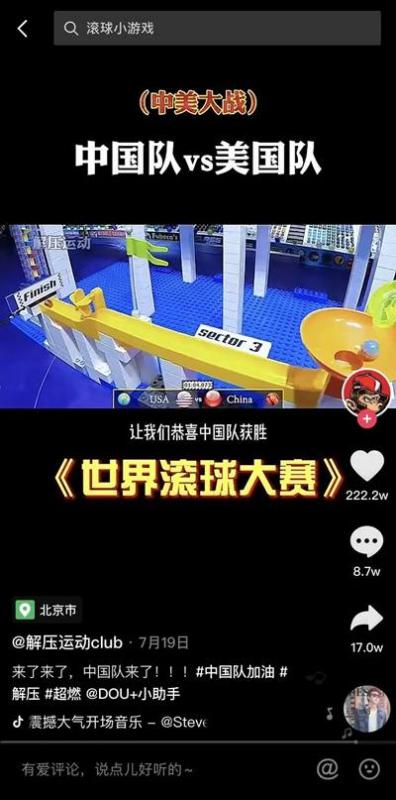 目前,“解压运动club”最受欢迎的一条弹珠比赛视频获得了222.2万的点赞以及17万的转发。