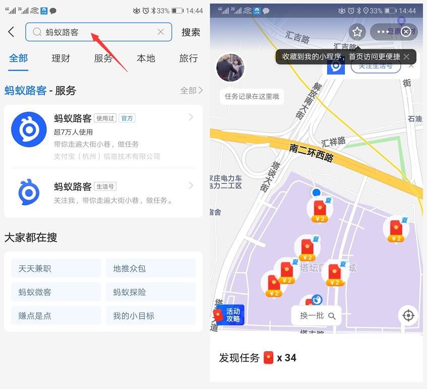 支付宝蚂蚁路客 寻找附近店铺领红包